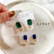 クリアな輝きを放つスクエアカットのクリスタルに、パールを丁寧に繋いだフープを合わせました。