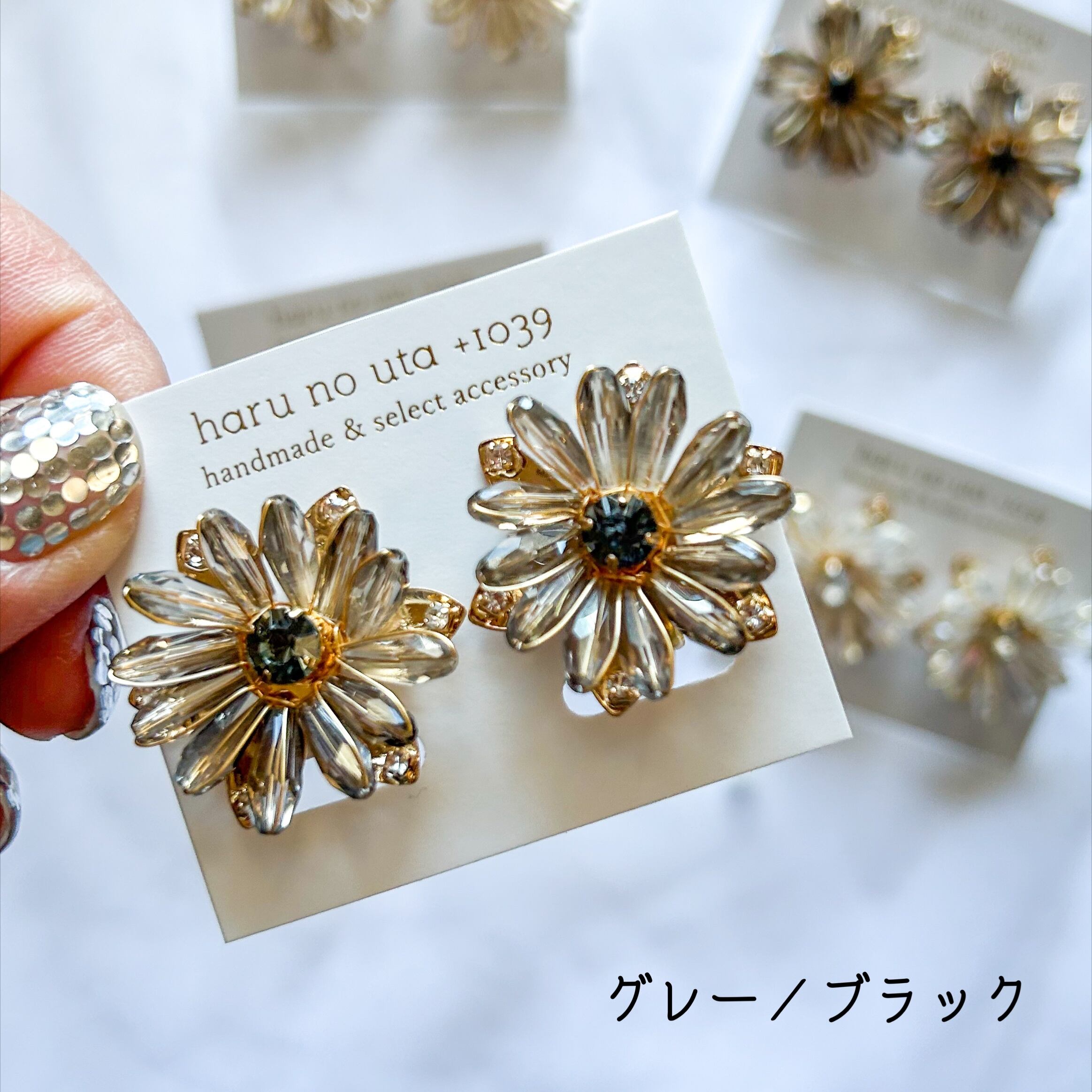 (花びら:グレー/クリスタル:ブラック)